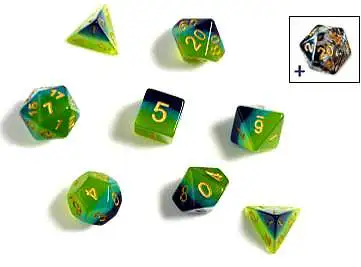 7 die set with a free D20 included. Comes in a tube